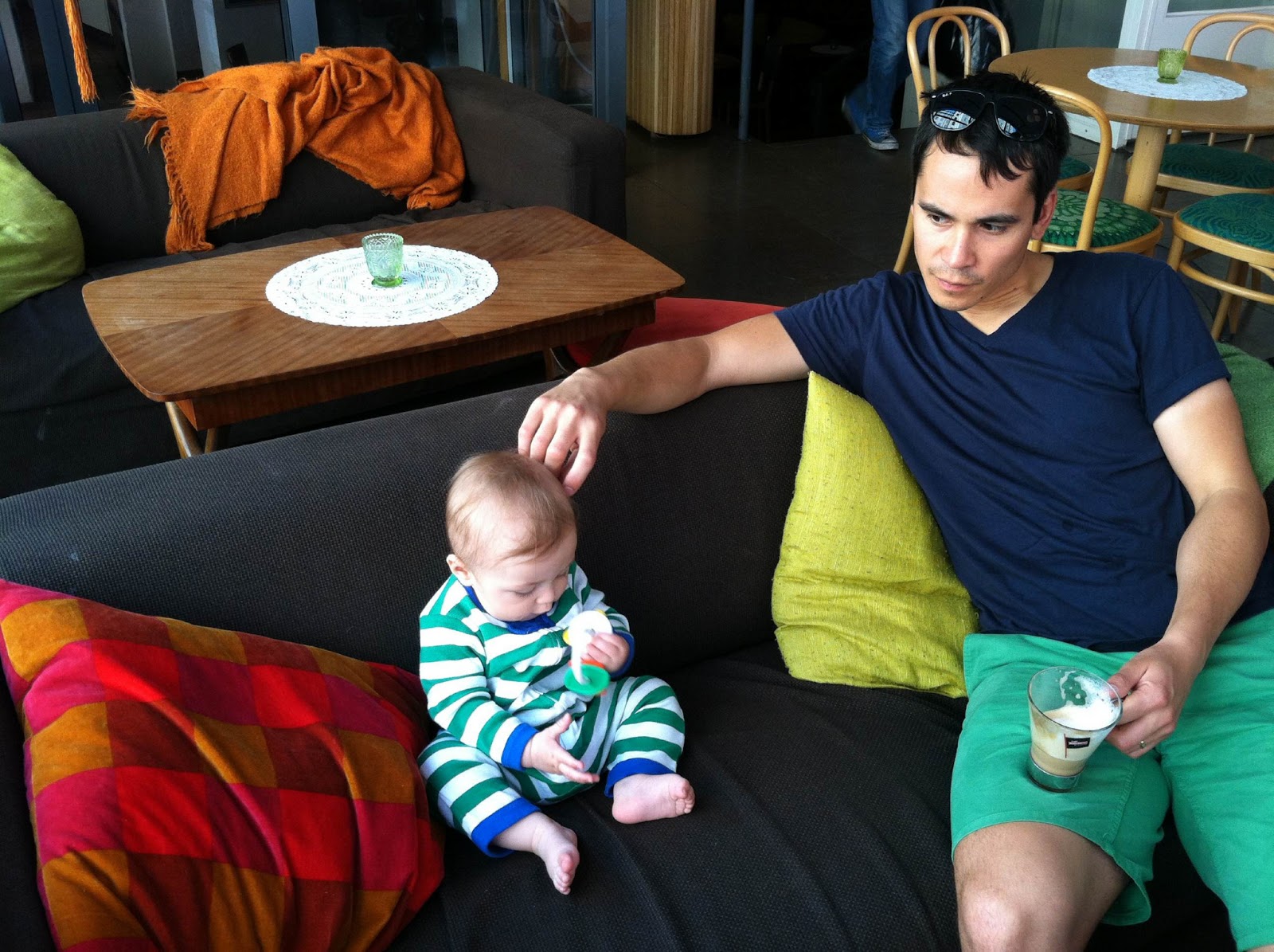 Augie's first fika (a popular Swedish tradition of coffee and a sweet treat):
