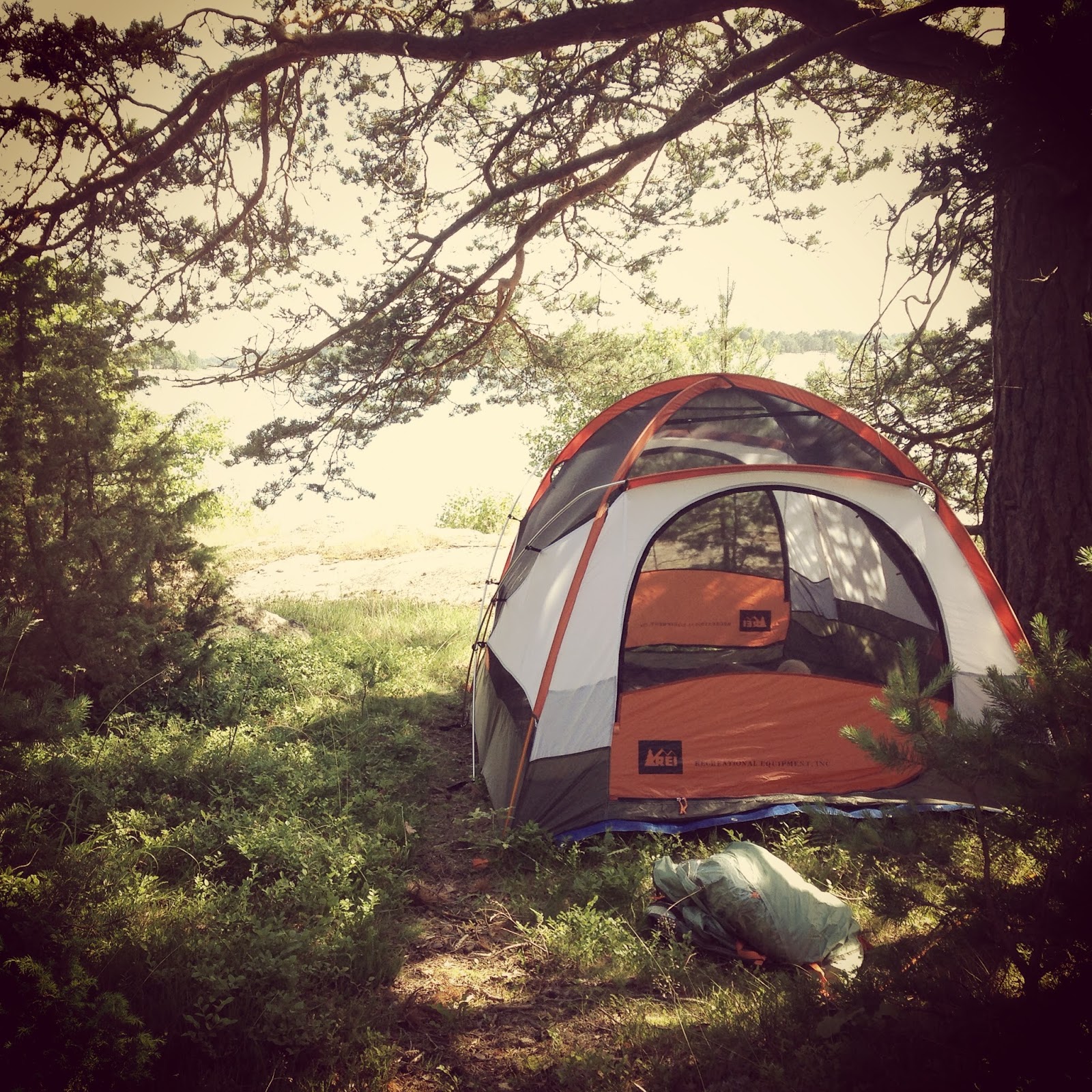 We had our first camping adventure as a family of four last weekend. We took advantage of Sweden's allemansrätten - "the everyman's right" - to camp in the forest on an island near us. We took a car ferry over to the island, drove until we found a beautiful area, then walked around until we found a place to put our tent. It was, by all accounts, a success.
